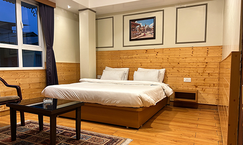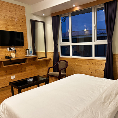 Experience a perfect blend of comfort and heritage in our Deluxe Queen Room at Janta Lodge, Darjeeling. Featuring a plush queen-sized bed, cozy interiors, and modern amenities, it offers a serene retreat. Wake up to crisp mountain air and enjoy warm hospitality, making it an ideal choice for your Himalayan getaway.