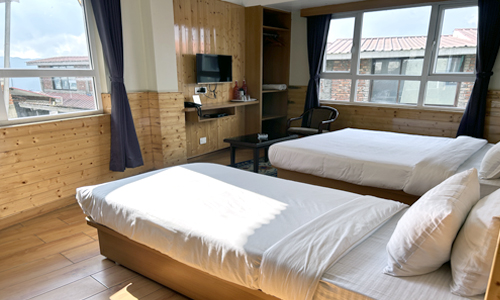 Experience the ultimate group retreat in the Deluxe Triple Queen Room at Janta Lodge, Darjeeling. This exceptionally spacious suite features three plush queen-sized beds, blending modern comfort with classic Himalayan charm. Perfect for families, it offers a warm, cozy sanctuary high above the clouds after a day of exploration.